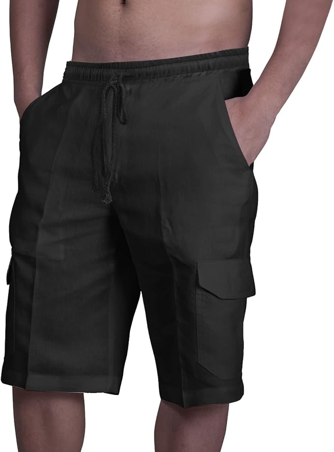 Estos pantalones cortos de lino para hombre combinan frescura y estilo. Disponibles en varios colores, son ideales para quienes buscan comodidad.
